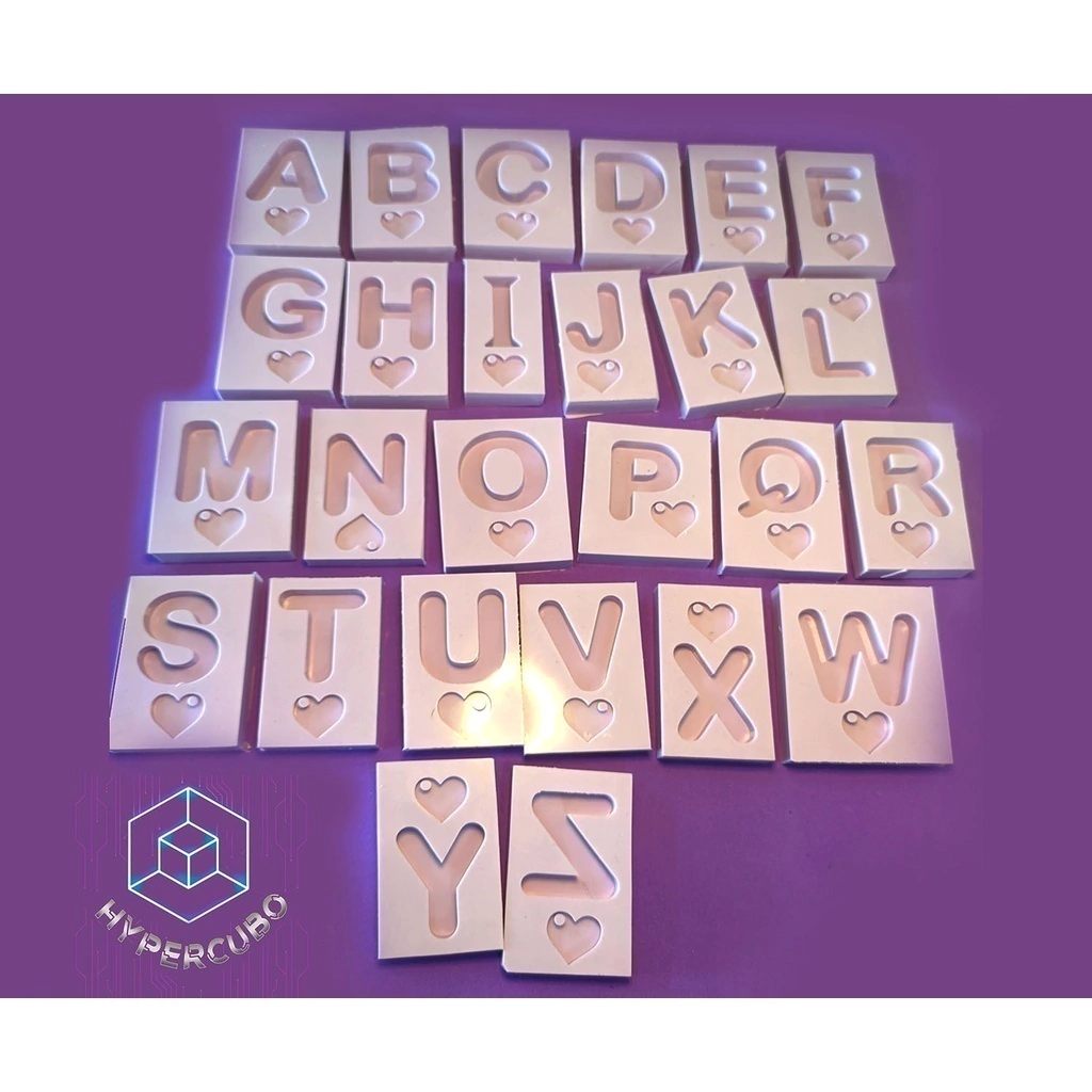 • ALFABETO COMPLETO composto de 26 moldes SEPARADOS com brinde de 1 Mini Coração em cada molde
